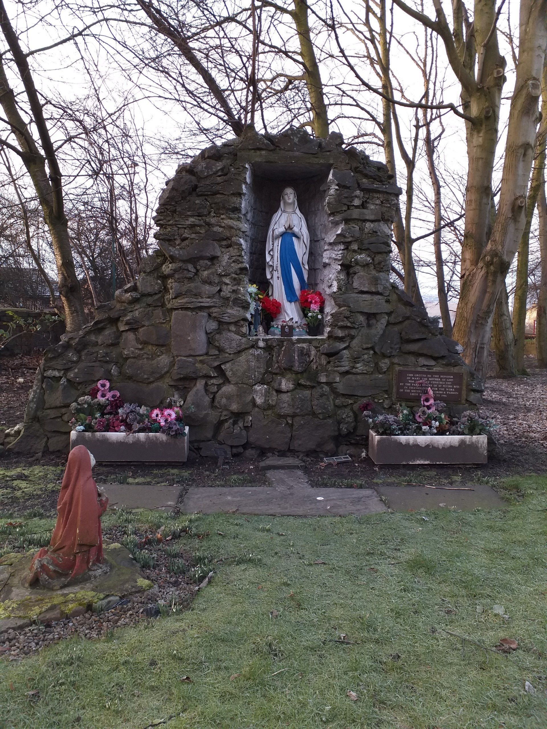 Lourdes Grotto which stood in the convent grounds of the Sisters of the Cross and Passion who ministered in the parish from 1895-1985.