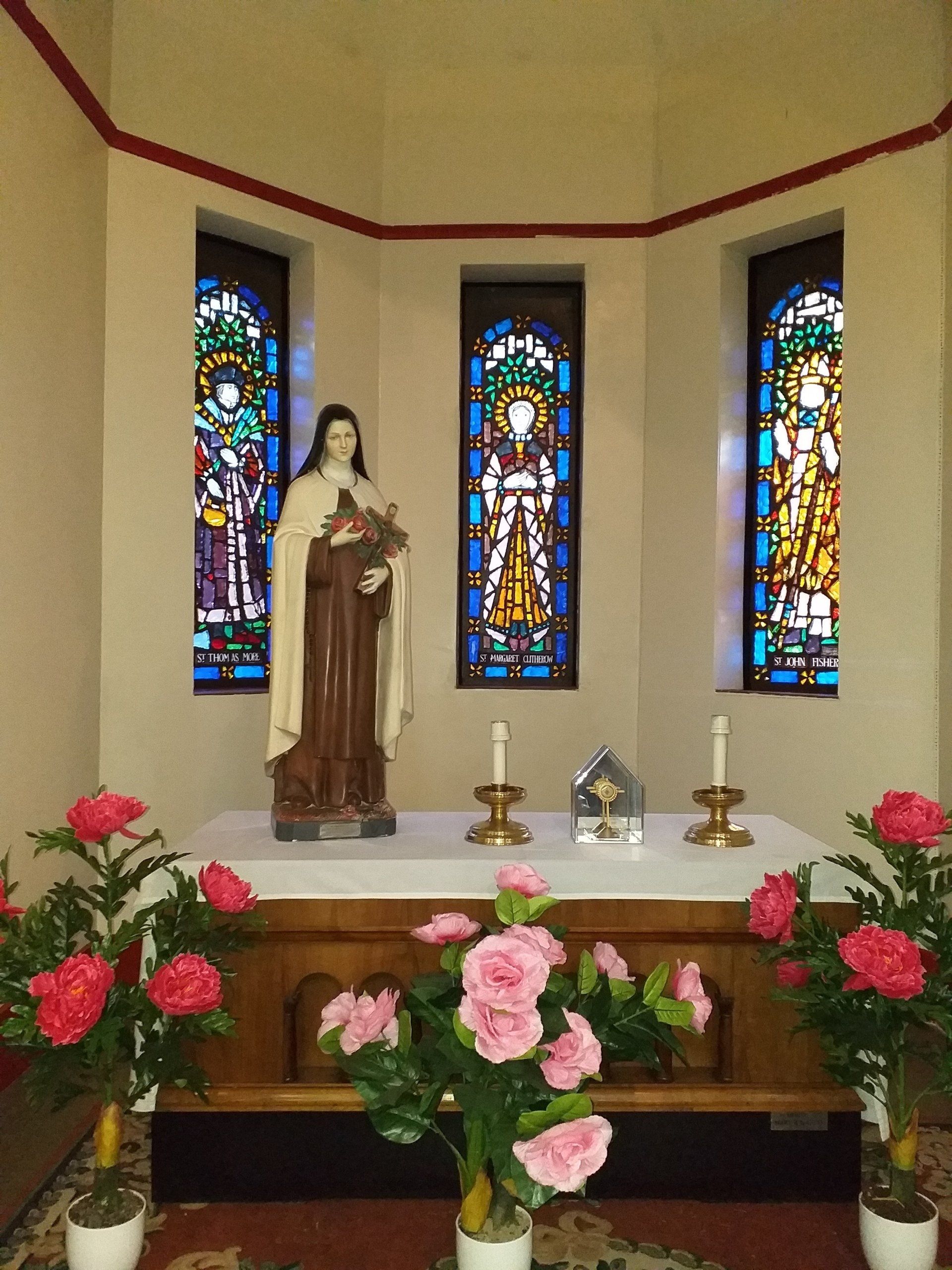 Martyrs Chapel dedicated in 1970 - St Therese statue donated by Mr and Mrs H. Joyce